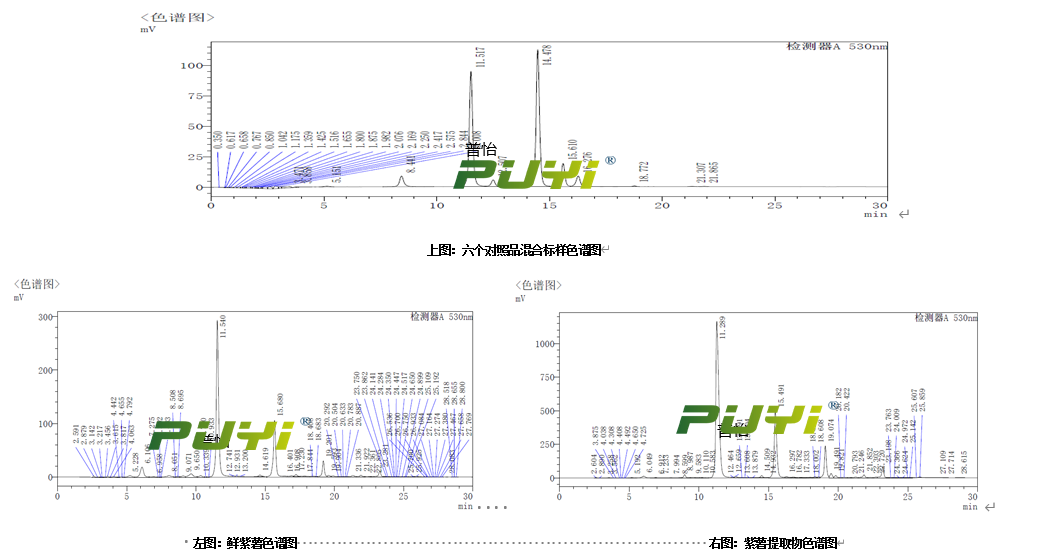 1.2、通過對(duì)紫薯中花青素中理化性質(zhì)的掌握,結(jié)合高效液相色譜對(duì)其中指標(biāo)成分的進(jìn)行含量監(jiān)控,篩選出一條或兩條適合擴(kuò)大化生產(chǎn)的提取,純化工藝,作為中試放大工藝路線。